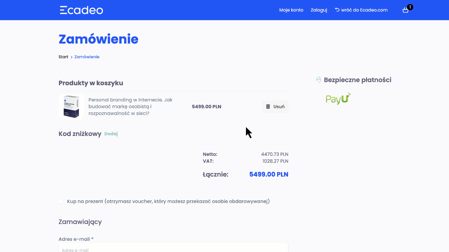 Proces zakupu na prezent wygląda podobnie, jak zwykły zakup. Jedyne, co musisz zrobić, to zaznaczyć checkbox „Kup na prezent”. "